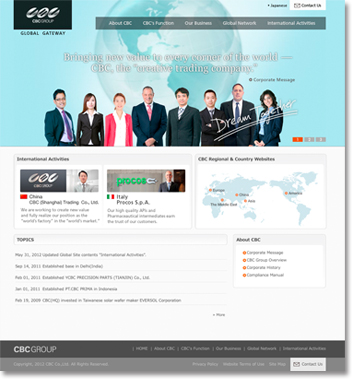 You can access "CBC Global Gate Way" (in English), the international website of CBC Co., Ltd., the headquarters of the CBC Group, in the following.